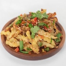 pomme de terre, ail, sésame, coriandre, sauce soja épicée