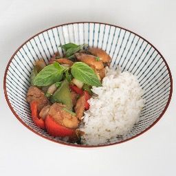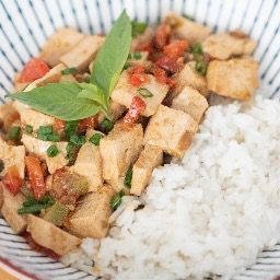Tofu, poivron, ail, cebette, riz