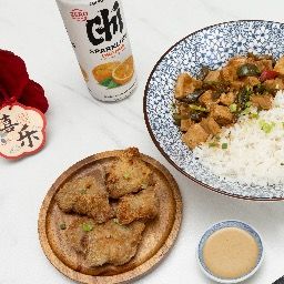 Poulet, chou chinois, cebette, sauce soja