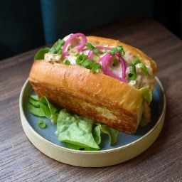 Brioche de ‘Grand-père Jules’ garnie d’une farce crevette au cajun.